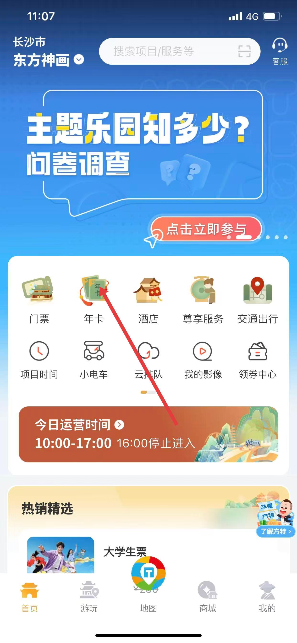 1、打開(kāi)方特旅游APP,在首頁(yè)點(diǎn)擊年卡選項(xiàng)。