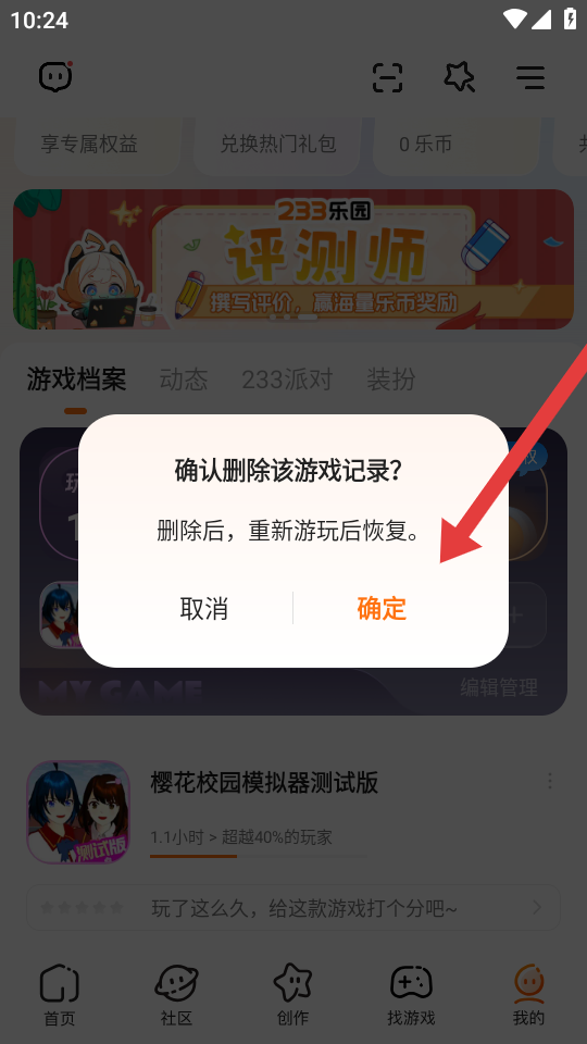 3、在確認(rèn)刪除彈窗里點(diǎn)擊確定,就可以直接刪除該游戲的游玩記錄,刪除后重新游玩會(huì)恢復(fù)記錄。