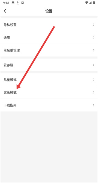 3、在進(jìn)入到設(shè)置頁面后,可以點(diǎn)擊家長(zhǎng)模式選項(xiàng),進(jìn)入設(shè)置。