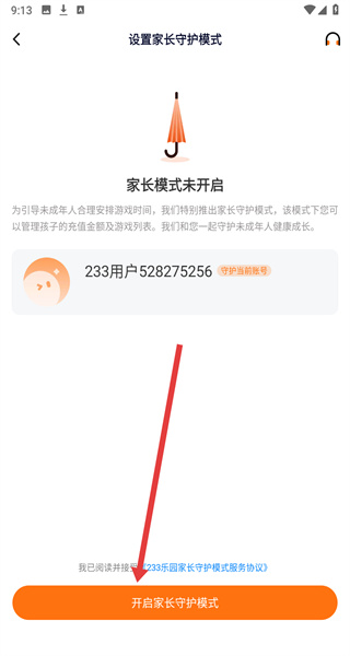 4、在進(jìn)入到頁面后,可以通過點(diǎn)擊底部開啟家長(zhǎng)守護(hù)模式按鈕,進(jìn)行開啟操作。