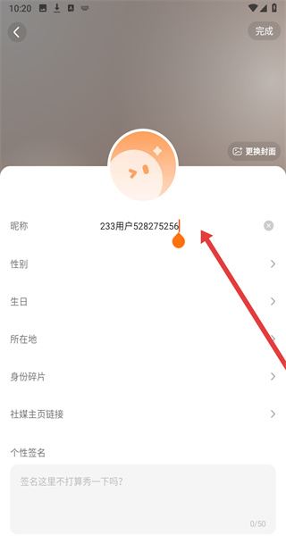 3、在資料編輯頁面,點(diǎn)擊昵稱輸入框進(jìn)行修改昵稱。