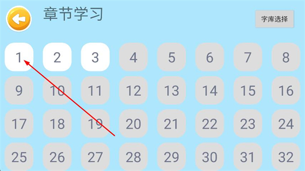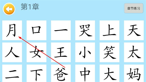 3、在章節(jié)的漢字展示頁面,點擊想要練習書寫的漢字。