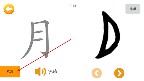 3、找漢字練習:在語音提示下,在18個漢字中找到所考漢字,難度適中,加深文字印象