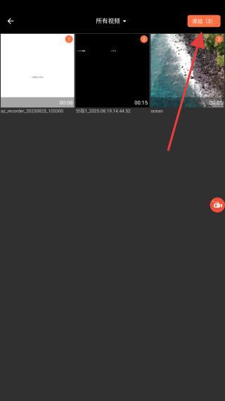 2、點擊界面右上角添加,選中需編輯的錄制視頻,進入編輯工作臺。