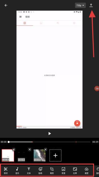 3、功能欄提供剪輯、音樂、文本、貼紙、配音、速度等工具,用戶需要根據(jù)所編輯的內(nèi)容進行使用。