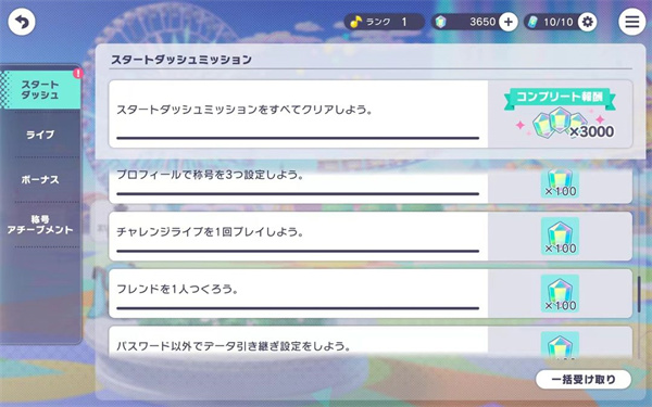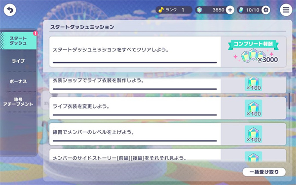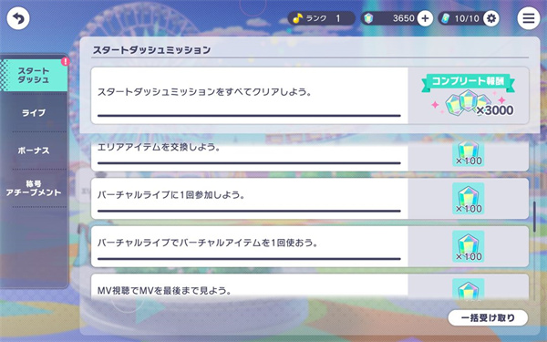 前5個(gè)完成方法很簡單、進(jìn)入MAINSTORY(主線劇情)、選擇各個(gè)團(tuán),右上角改一下“開催順”,選擇第一章(章節(jié)帶有“メインストーリー”),每個(gè)團(tuán)的第一章點(diǎn)進(jìn)去,完成下圖紅色圈出來的部分。