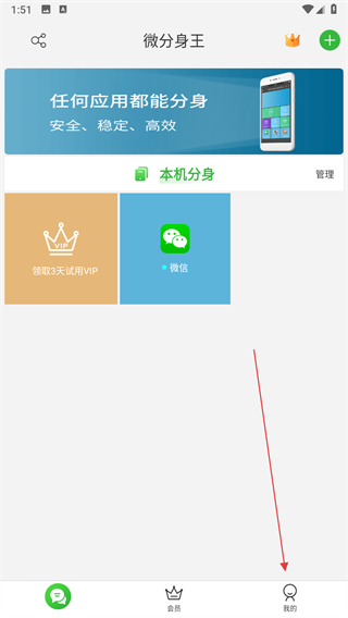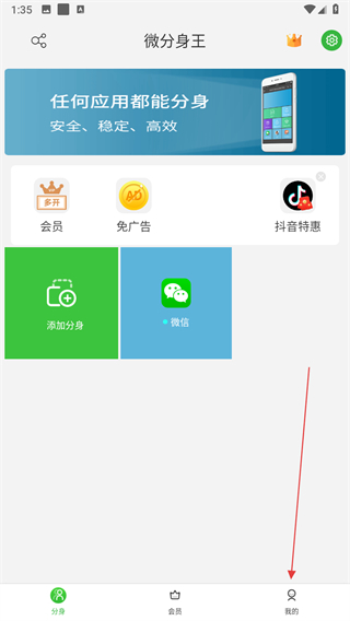 1、打開(kāi)微分身王APP,點(diǎn)擊右下角我的。