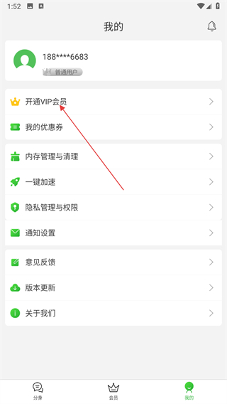 2、在我的頁(yè)面,點(diǎn)擊開(kāi)通VIP會(huì)員選項(xiàng)。