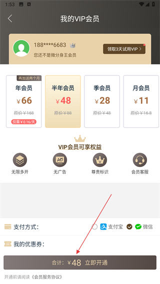 4、點(diǎn)擊立即開(kāi)通按鈕,點(diǎn)擊繼續(xù)支付即可。