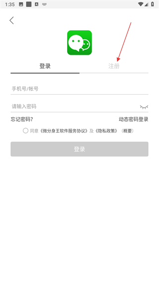 3、在登錄注冊(cè)頁(yè)面,切換到注冊(cè)標(biāo)簽頁(yè)。