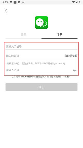4、輸入手機(jī)號(hào)點(diǎn)擊獲取驗(yàn)證碼并填寫密碼。