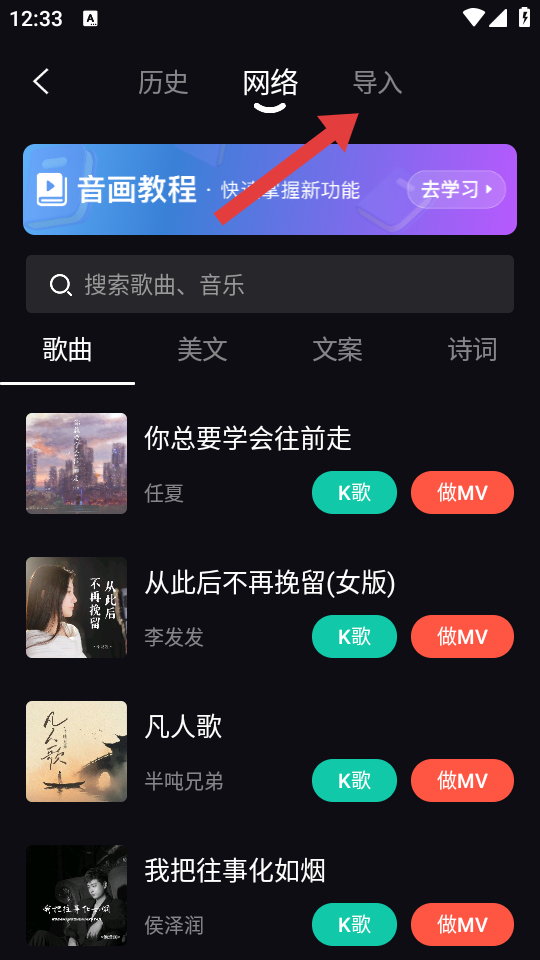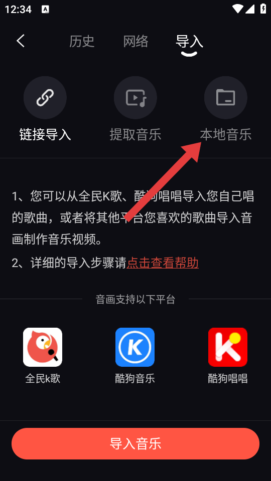 3、在導入標簽頁中,點擊本地音樂選項,進入本地音樂選擇界面。