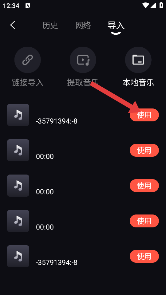 4、找到要導入的音頻文件,點擊使用按鈕,即可將該本地音樂導入音畫進行編輯。