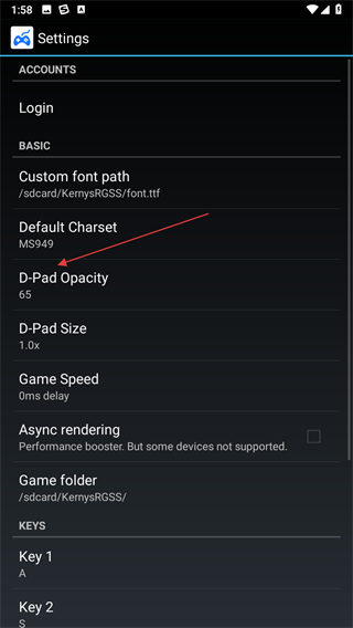 2、進(jìn)入設(shè)置界面后,找到D-Pad Opacity方向鍵透明度選項(xiàng)。