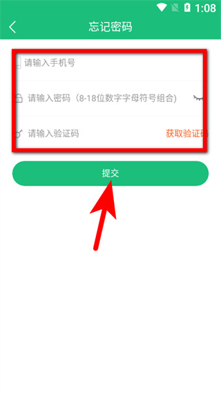 3、輸入手機(jī)號(hào)、新密碼和驗(yàn)證碼,點(diǎn)擊提交按鈕,即可重置密碼。