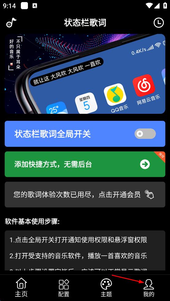 3.可以將歌詞放置在狀態(tài)欄之上,自定義歌詞的顏色,背景,樣式