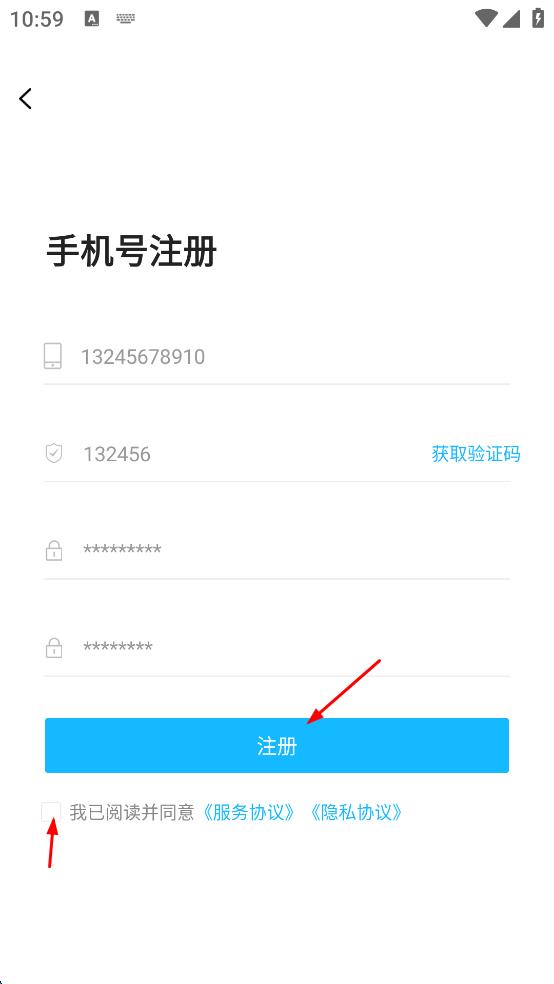 3、勾選我已閱讀并同意服務(wù)協(xié)議,隱私協(xié)議,然后點(diǎn)擊“注冊”按鈕,完成賬號(hào)注冊。