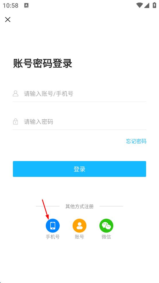 1、打開學(xué)習(xí)類APP,進(jìn)入賬號(hào)密碼登錄頁面,點(diǎn)擊“手機(jī)號(hào)”選項(xiàng),進(jìn)入手機(jī)號(hào)注冊界面。