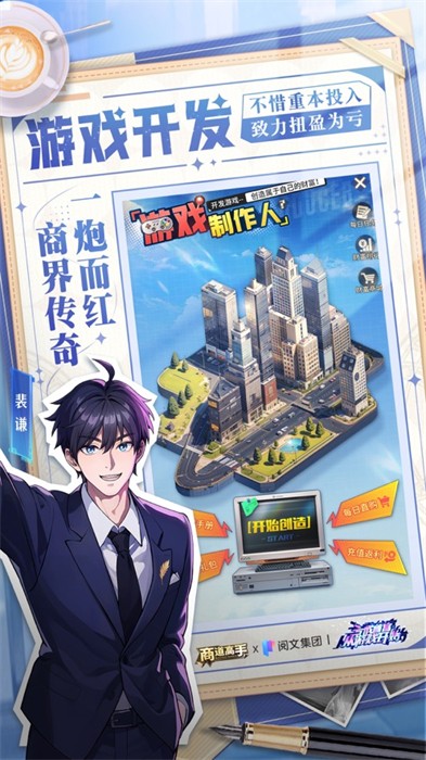 1、精美的游戲畫面設(shè)計(jì),在游戲中有多種玩法等你,讓你親身體驗(yàn)一番創(chuàng)業(yè)之旅,還有許多的美女邂逅哦。