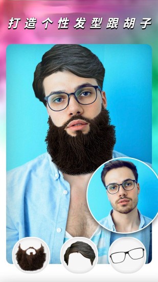 使用此照片編輯器,你可以每天更改發(fā)型設(shè)計(jì)。還可以在胡須,胡子或頭發(fā)上添加不同的顏色。