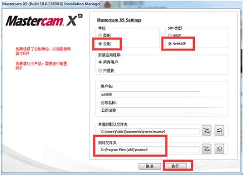 2、這時(shí)候我們需要選擇配置以及MastercamX9安裝目錄。