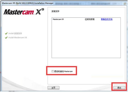 4、Mastercam X9安裝結(jié)束,點(diǎn)擊退出即可。
