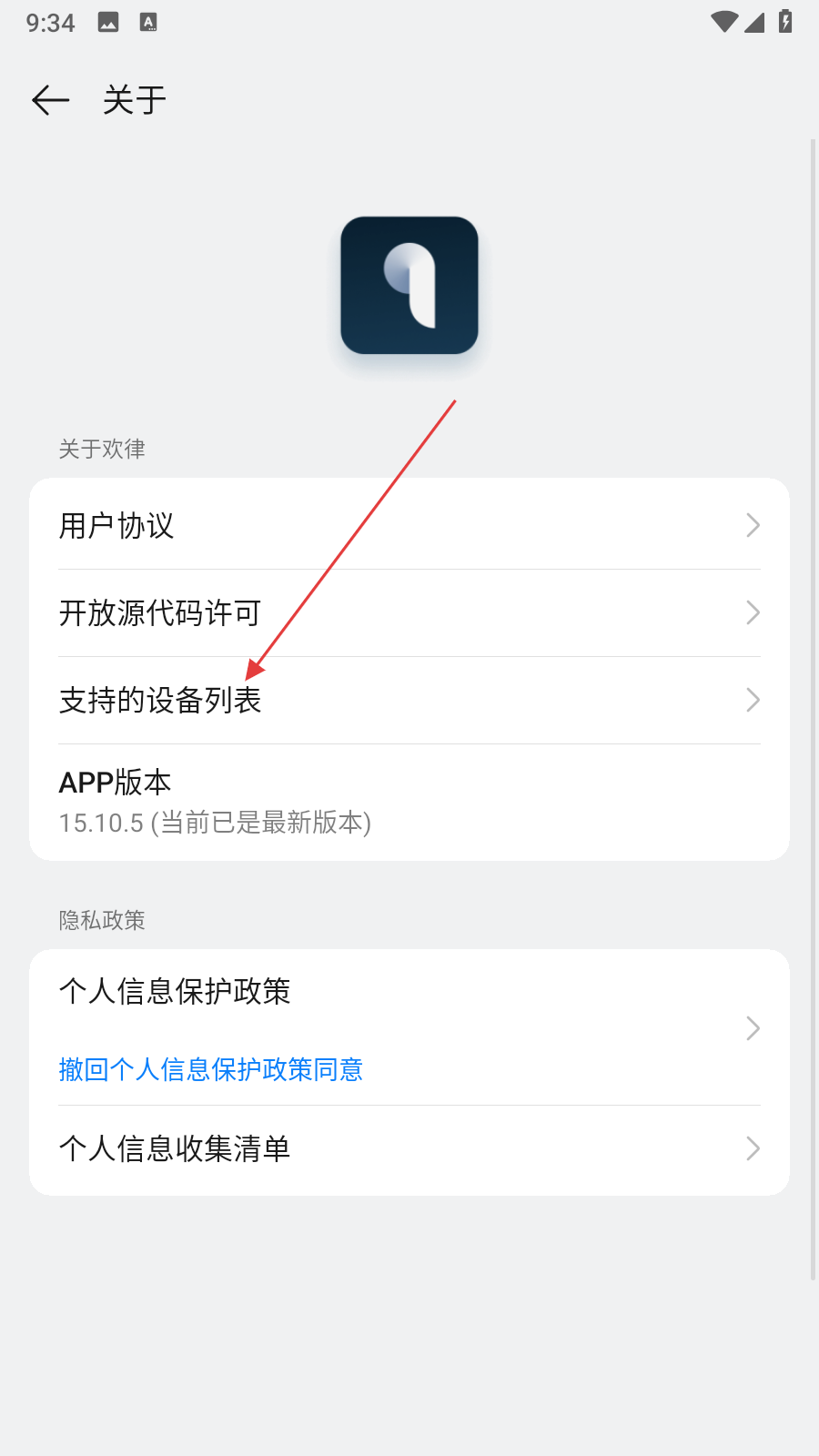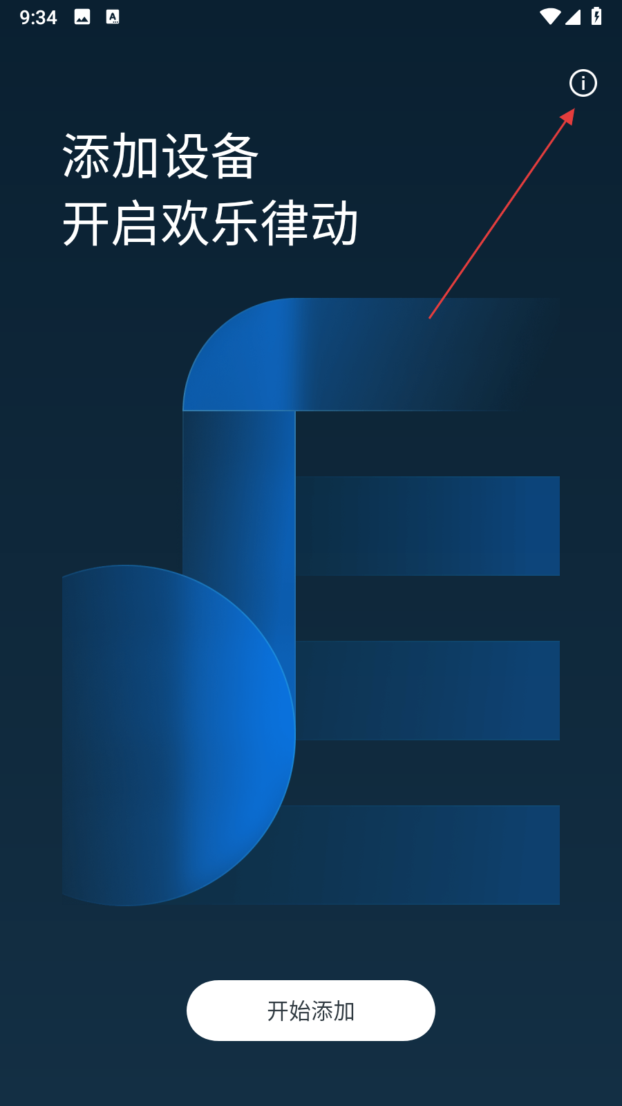 1、打開(kāi)歡律APP,在添加設(shè)備頁(yè)面點(diǎn)擊右上角的i圖標(biāo),進(jìn)入關(guān)于頁(yè)面。