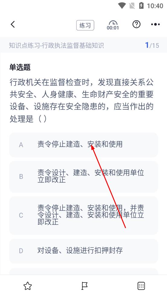 2、進(jìn)入題目頁(yè)面后,瀏覽題目?jī)?nèi)容,點(diǎn)擊選擇你認(rèn)為正確的答案選項(xiàng),完成答題。