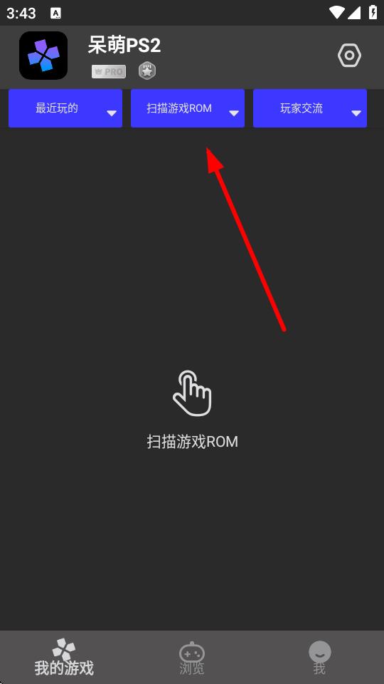 2、在界面中找到并點(diǎn)擊掃描游戲ROM按鈕,彈出掃描選項(xiàng)菜單。