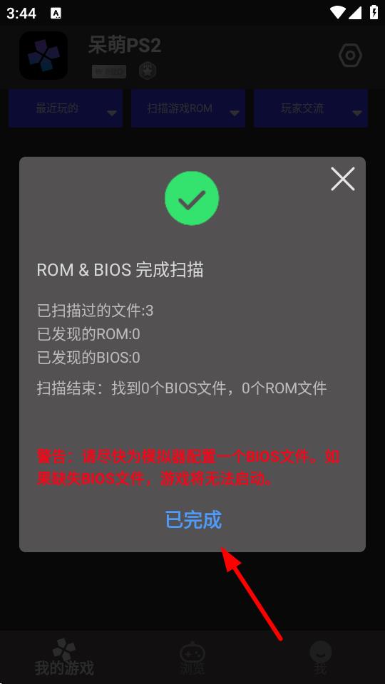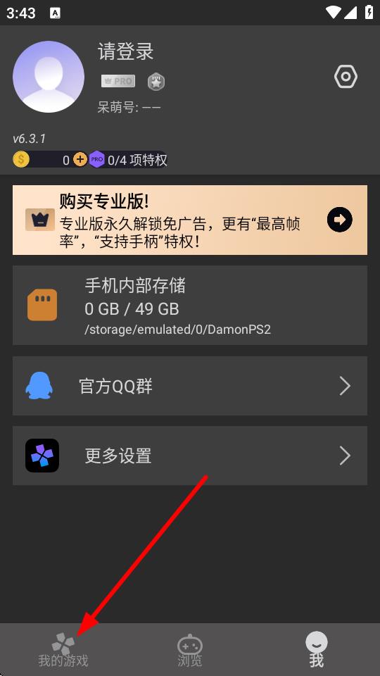 1、打開呆萌PS2模擬器,點(diǎn)擊底部我的游戲選項(xiàng),進(jìn)入游戲相關(guān)界面。