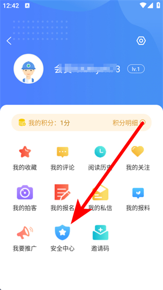 2、在個人的頁面,點擊安全中心按鈕,進入安全中心的頁面。