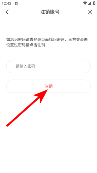 4、在注銷賬號的頁面,輸入密碼后點擊注銷,完成賬號注銷操作。