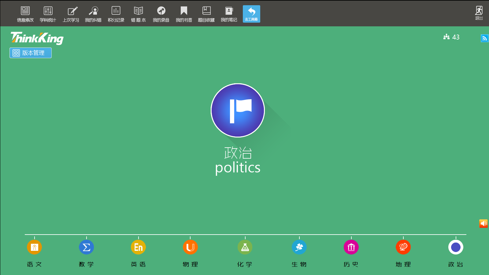 提供語文、數(shù)學、英語、物理、化學、生物、歷史、地理、政治九大科目。