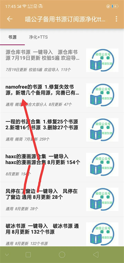 6、在這里還可以看到修復(fù)失效的書源內(nèi)容,并且還新增了幾個備用源大家可以自己進(jìn)行保存使用。