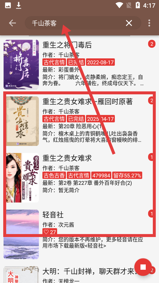 2、在搜索欄輸入書名或作者,查看搜索結(jié)果,來篩選目標(biāo)書籍。