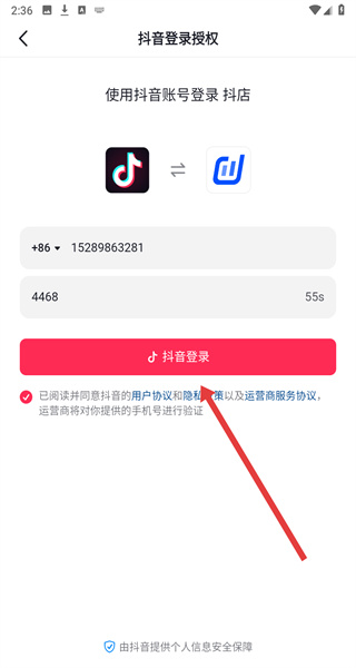 4、輸入驗證碼后點擊“抖音登錄”,完成抖店賬號登錄。