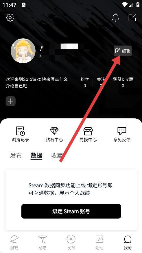 2、在個(gè)人頁面中,頭像和昵稱區(qū)域的右側(cè),點(diǎn)擊編輯按鈕。