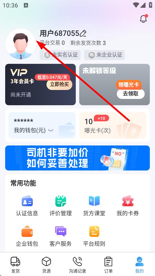 1、打開特運(yùn)通APP,點(diǎn)擊底部導(dǎo)航欄最右側(cè)我的選項(xiàng),進(jìn)入個(gè)人頁(yè)面。