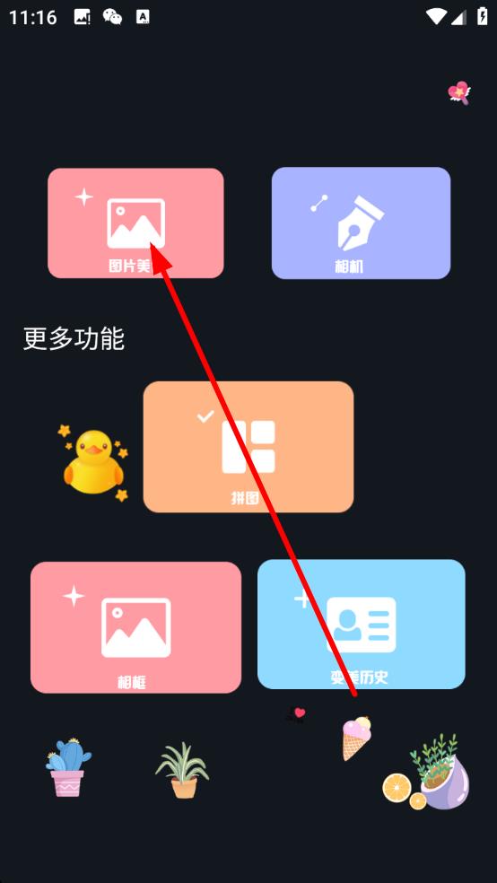 2、登錄后,找到圖片美化功能入口并點擊,進(jìn)入圖片選擇界面。