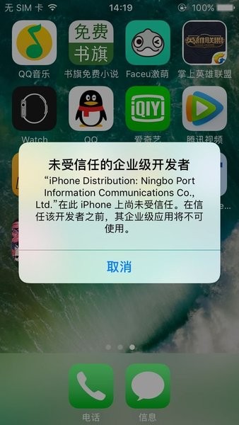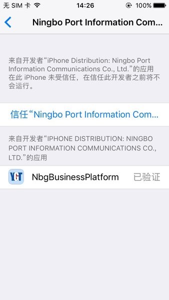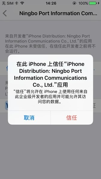 4、點(diǎn)擊 信任“Ningbo Port Information Com….”