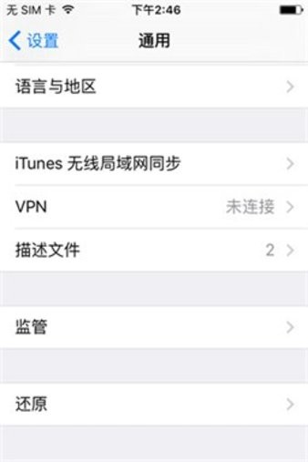 2、進(jìn)入設(shè)置 —> 通用 —> 描述文件(Ios10顯示的是設(shè)備管理)