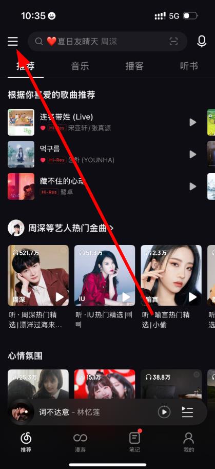1、打開網易云音樂APP,點擊左上角的三條橫線圖標,展開側邊欄。