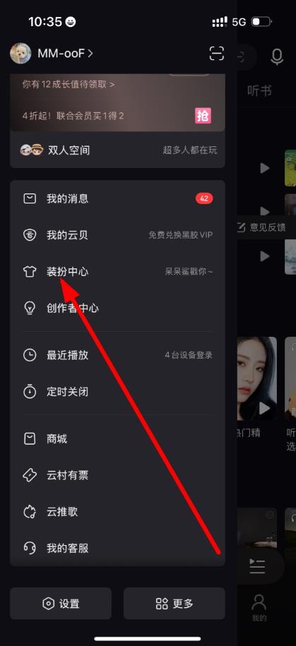 2、在側邊欄中,找到并點擊裝扮中心選項。