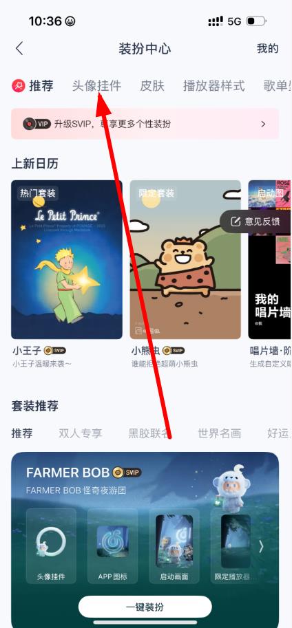 3、進入裝扮中心頁面后,點擊上方的頭像掛件選項卡。