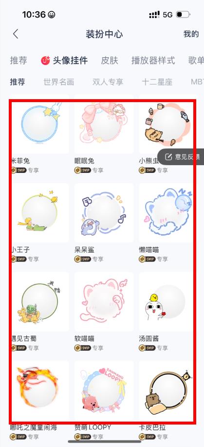 4、在頭像掛件頁面,瀏覽并選擇你喜歡的頭像掛件。