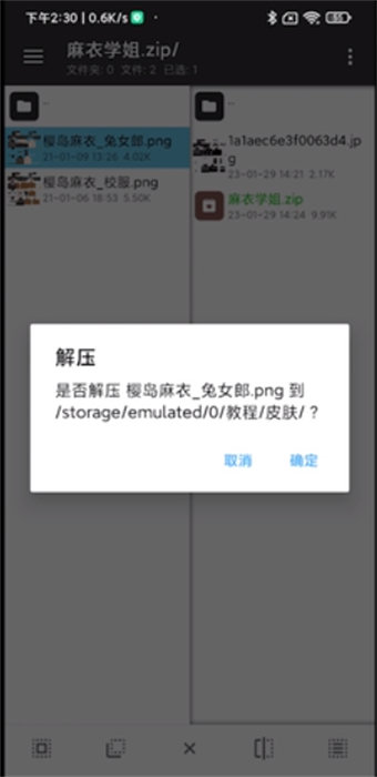 1、首先,你需要提前將自己的皮膚下載下來,并能順利進行壓縮到設(shè)備當(dāng)中,如下圖所示;