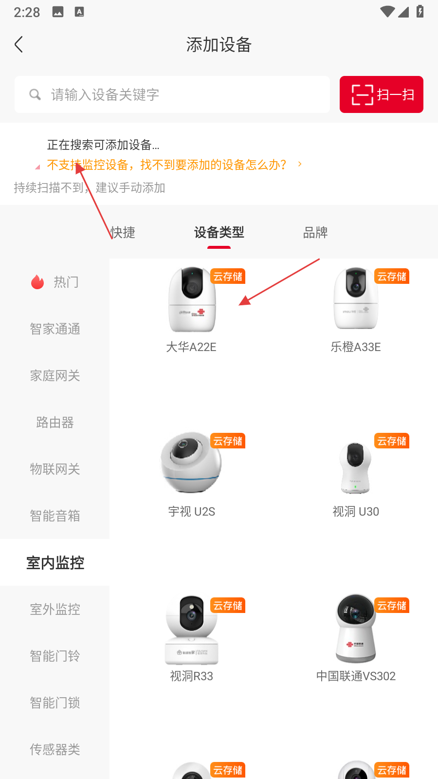 2、在添加設(shè)備頁(yè)面中,等待搜索可添加設(shè)備或者選擇要添加的設(shè)備類型,點(diǎn)擊對(duì)應(yīng)設(shè)備圖標(biāo)。