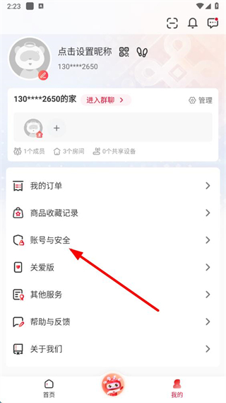 2、在個(gè)人中心頁(yè)面,點(diǎn)擊賬號(hào)與安全選項(xiàng),進(jìn)入賬號(hào)安全管理界面。