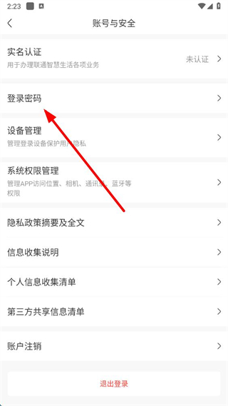 3、在賬號(hào)與安全頁(yè)面,點(diǎn)擊登錄密碼選項(xiàng),進(jìn)入設(shè)置密碼流程。