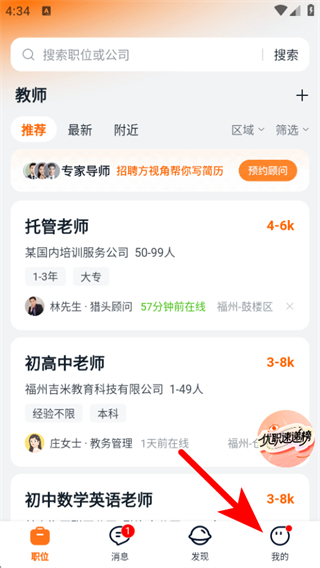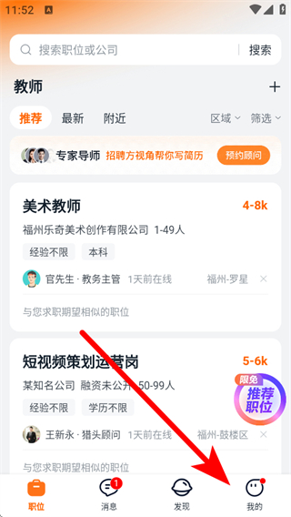 1、在職位的頁(yè)面,需要點(diǎn)擊底部我的按鈕,進(jìn)入個(gè)人的頁(yè)面。